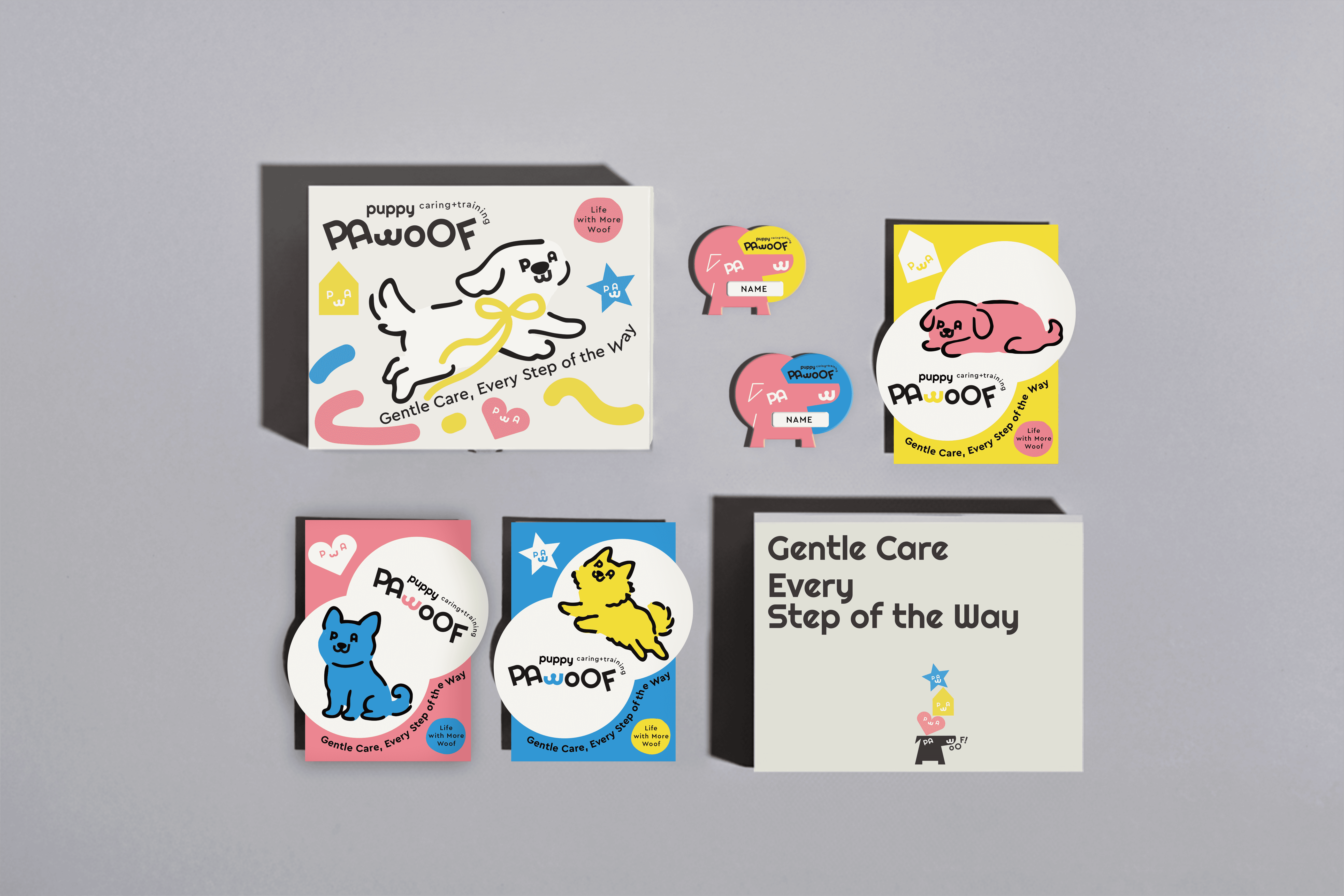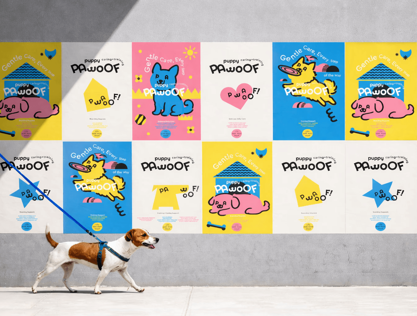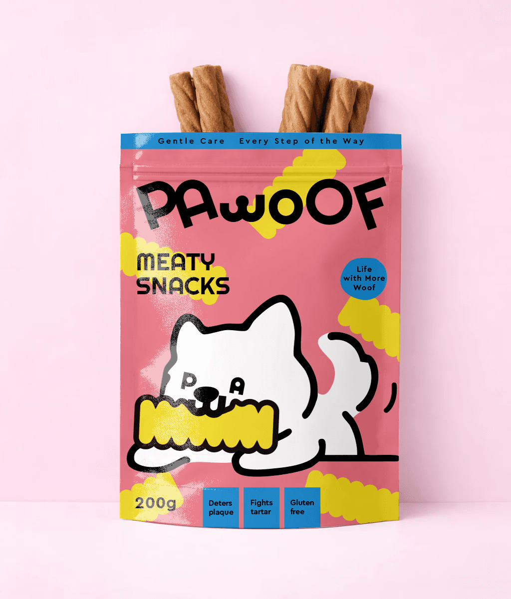 PAWOOF provides thoughtful, caring services that support dogs' comfort, health and happiness — every day.PAWOOF's design direction embraces a young and playful spirit, while staying warm and approachable. We combine soft shapes, cheerful colors, and light-hearted visuals to create a brand that feels friendly, energetic, and full of personality.