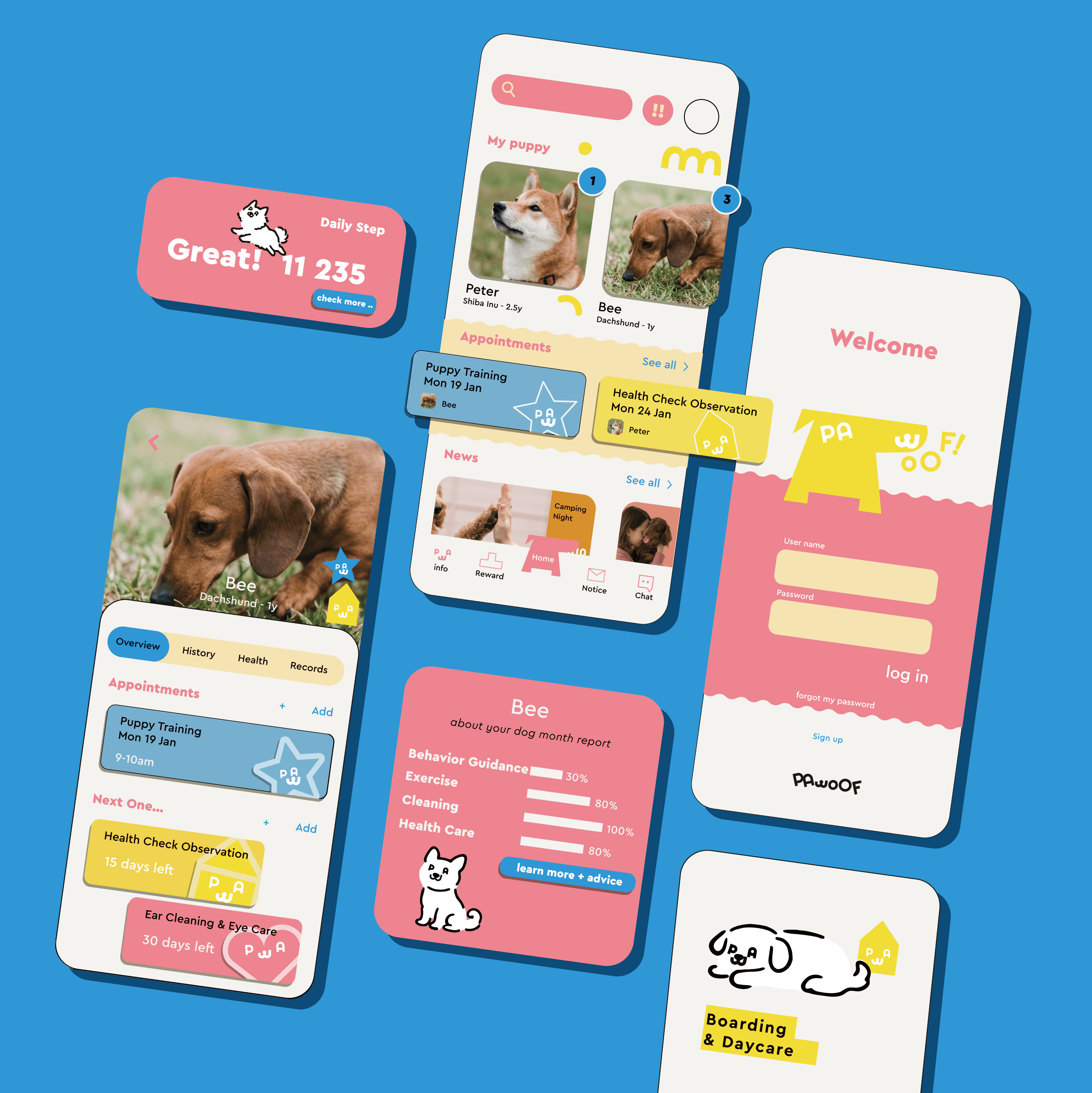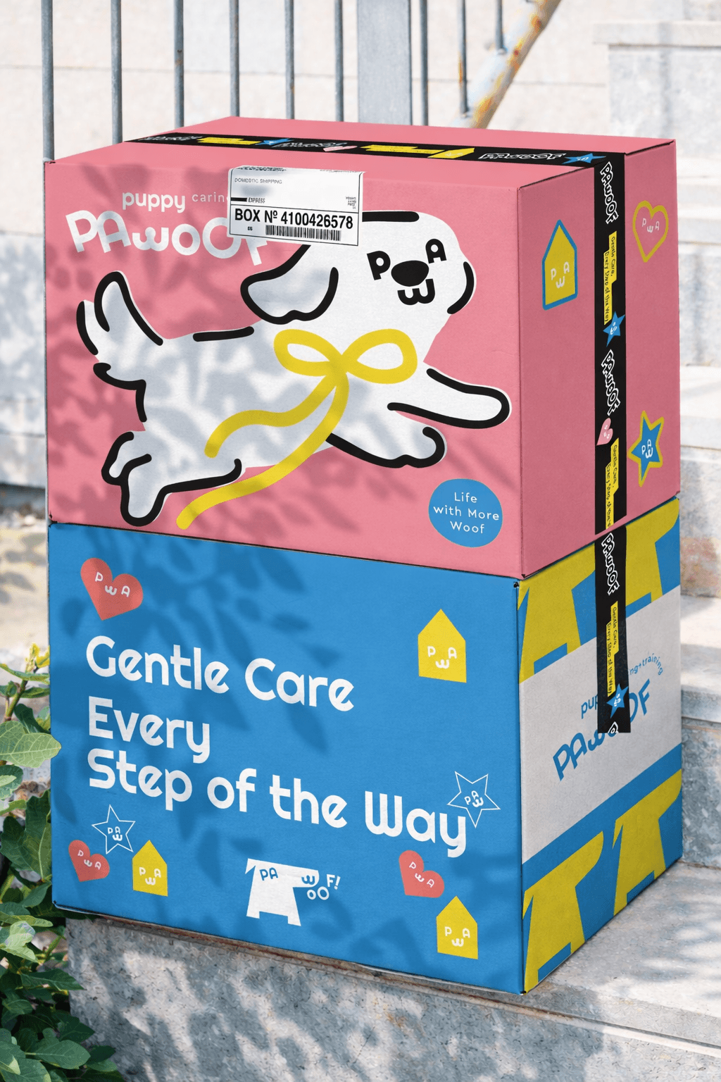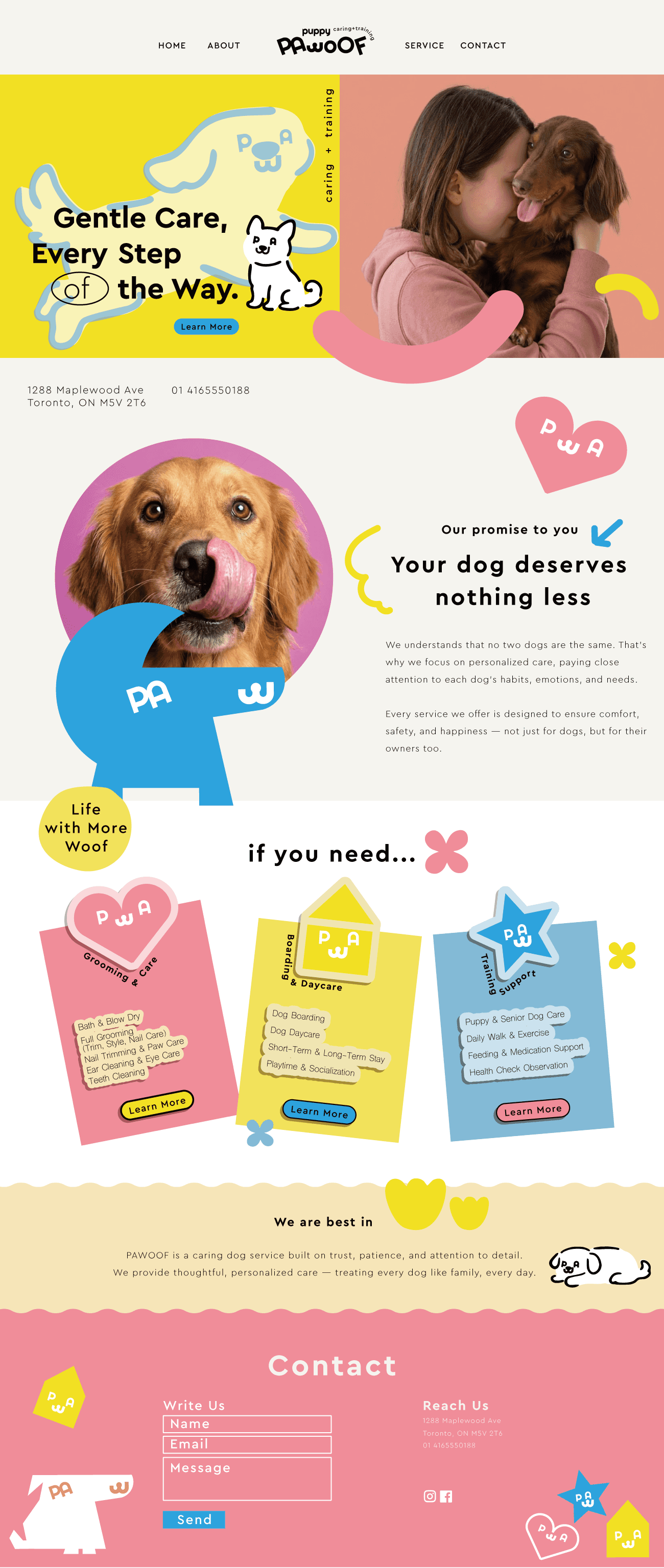 PAWOOF provides thoughtful, caring services that support dogs' comfort, health and happiness — every day.PAWOOF's design direction embraces a young and playful spirit, while staying warm and approachable. We combine soft shapes, cheerful colors, and light-hearted visuals to create a brand that feels friendly, energetic, and full of personality.